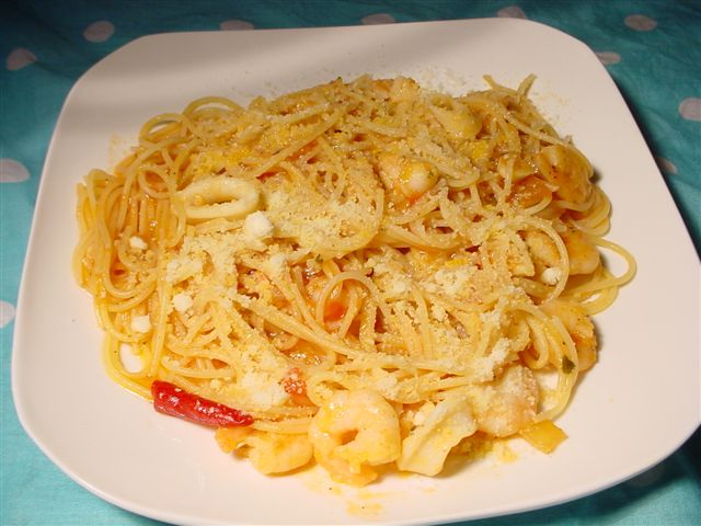 7月26日は私の36歳のバースデーということで(笑)、ブルベでPEACOCK BABIESで演奏した後、誕生日パーティーをかねた打ち上げをやり、20人ほどの人たちが残ってパーティに参加してくれた。ワインやブランデーなどのお酒を沢山もらったが、皆と一緒に飲んでしまった。結局打ち上げの料理もオレが自分で作るはめに。手羽先のマンゴーカレー風味、チキンピラフ、海苔と柚子胡椒のスパゲティなどをふるまった。写真は自作のペスカトーレ(魚介類のトマト味のスパゲティ)。